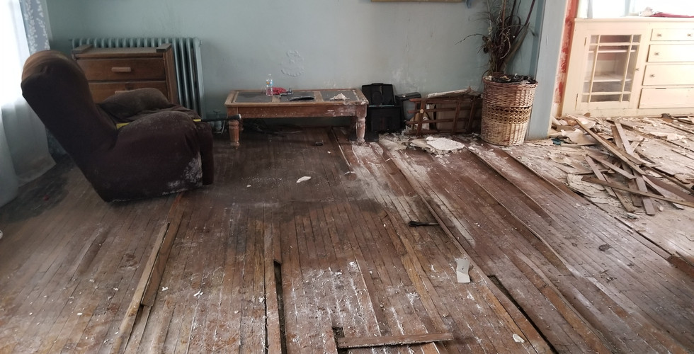 Wells Environmental was contacted to perform a mold remediation on a foreclosed home that had sat vacant for quite some time. A busted pipe in an upstairs bathroom had saturated the living room and dining room ceilings below. Mold was visible on the ceiling and the wood flooring had buckled due to the moisture. Damage extended into the basement where drywall was heavily impacted. We removed all of the impacted materials under negative pressure and treated all remaining wood throughout. Following remediation, clearance samples were collected and analyzed by an accredited laboratory demonstrating the house was clear of mold. Any company willing to do remediation should be willing to prove they have done the job right with clearance sampling!