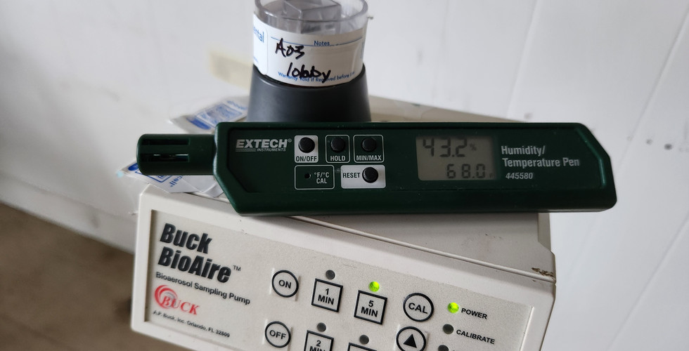 We moisture mapped the entire building, locating wet drywall and paneling throughout. Walls were wet from 2 feet up to 8 feet in some spots. We collected samples to test for asbestos prior to the beginning of any demolition and air and tape samples to quantify and identify the mold in the building. Mold had already taken hold in a few of the rooms including an active computer server room. We warned the manager that if something wasn't done soon, the warmer temperatures would allow the mold to overrun the entire space. We will probably be tearing out the wet drywall in the next couple of weeks.